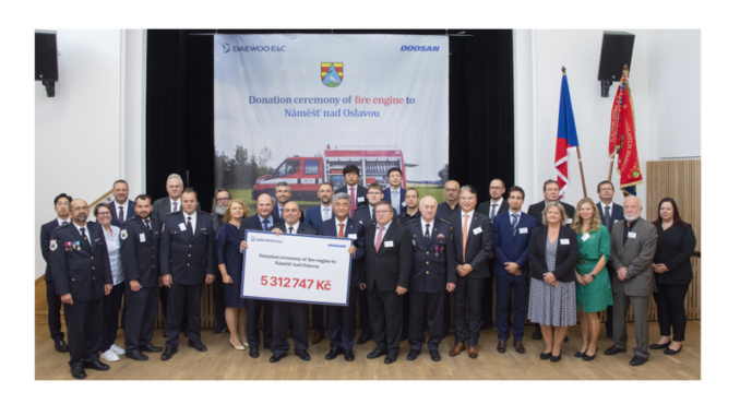Předseda představenstva společnosti Daewoo E&C Jung Won-Ju navštívil 19. září Třebíčsko, kde se zúčastnil oficiálního předání hasičského vozu a slavnostního oběda s místními obyvateli. Společnost darovala zásahové vozidlo v hodnotě více než 5 milionů korun. Plně vybavený hasičský vůz byl předán místnímu sboru dobrovolných hasičů. Jako zástupce vedoucí stavební společnosti společného stavebního konsorcia (Daewoo E&C a Doosan Enerbility) pro projekt nové jaderné elektrárny Dukovany předseda Jung zdůraznil důležitost vzájemné spolupráce. Požádal také místní obyvatele o jejich podporu při realizaci zakázky na výstavbu jaderné elektrárny.